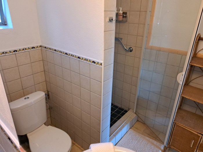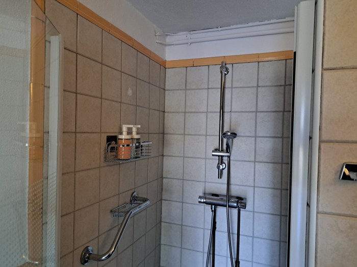 De badkamer beschikt over een douche, toilet en is uitgerust met douchegel en shampoo, zodat je minder hoeft mee te nemen.