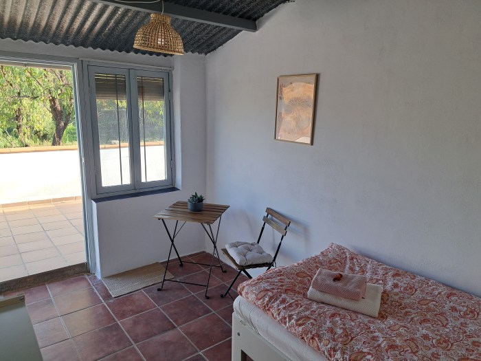 De kamer beschikt over een comfortabel bed met fris opgemaakte lakens en een extra dekentje voor koelere avonden. Er staat een handig tafeltje met een stoel die je ook buiten op het terras kunt plaatsen om te genieten van de ochtendzon en de frisse berglucht.