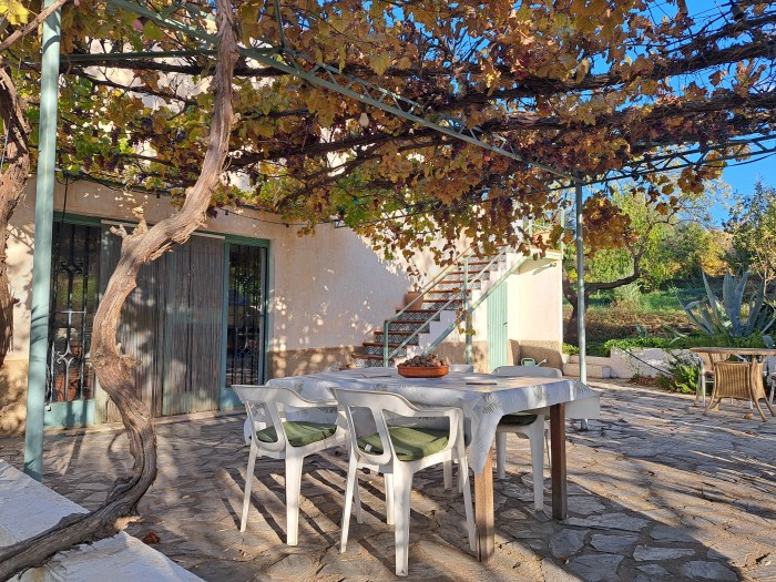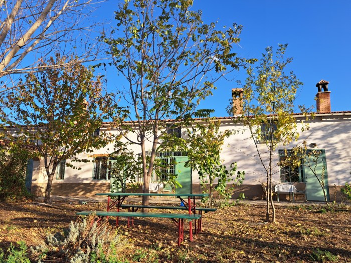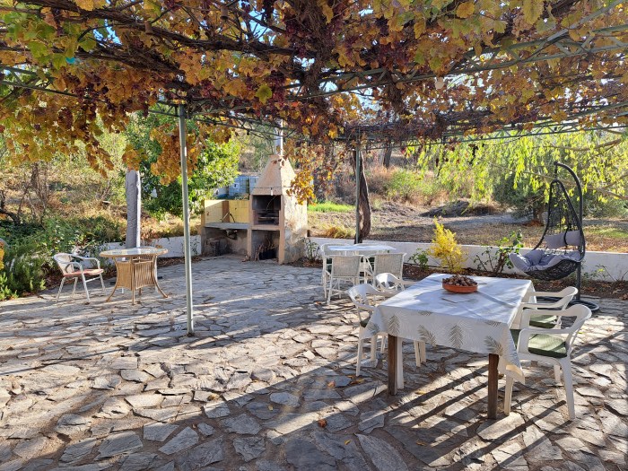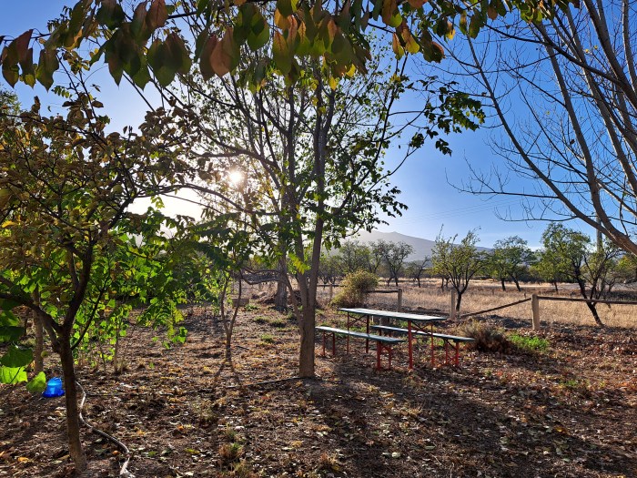 Er staan verschillende zitplekjes verspreid over het terrein, zodat je altijd een hoekje vindt dat bij je past — zonnig, schaduwrijk, rustig of met uitzicht op de bergen. Het terras is ingericht om gezellig samen te eten of even te verpozen na een dag vol uitstapjes.
