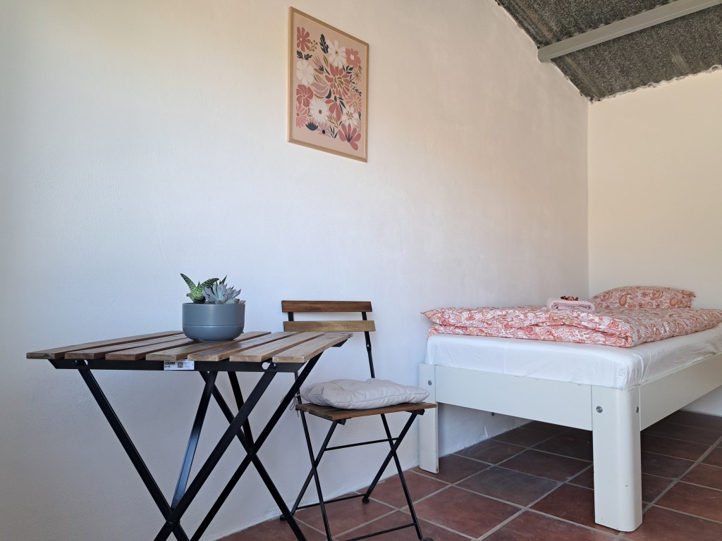 Onze kamers zijn eenvoudig, comfortabel en gevuld met alles wat je nodig hebt voor een ontspannen verblijf. Elke ruimte heeft zijn eigen sfeer en biedt toegang tot de gedeelde leefruimtes, keuken en douches. Of je nu alleen reist, met z’n tweeën of in een kleine groep, je vindt hier een rustige plek om tot rust te komen en te genieten van de omgeving.